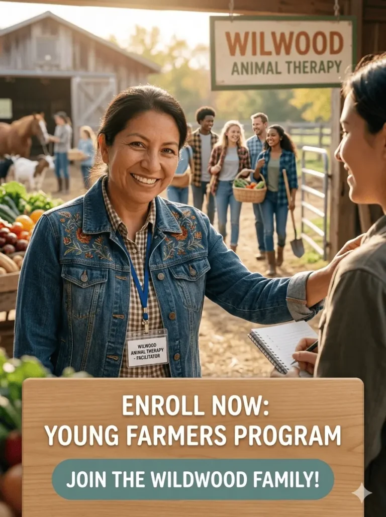 The Young Farmers Program at Wildwood Animal Therapy offers a peaceful, farm-based therapy and learning experience designed to nurture growth, confidence, and meaningful connections. Participants engage in hands-on activities with farm animals, gardening, and outdoor learning, all in a supportive and inclusive environment.